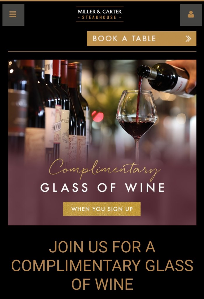 Miller and Carter – Get a free glass of wine each thanks to the newsletter sign up. There’s other fab freebies and discounts available like midweek set menus, birthday freebies and more!