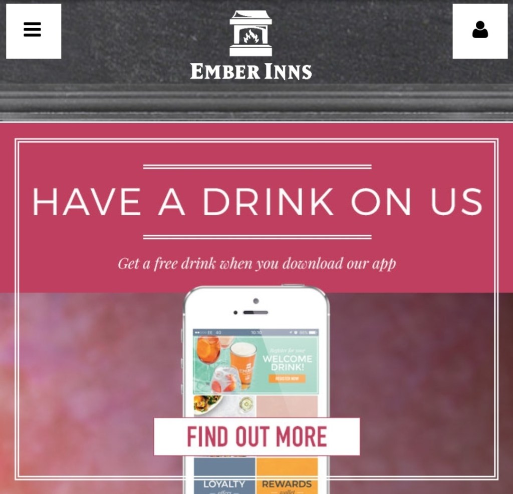 Sizzling Pubs – This app also offers a free drink when you first use the app. You can also sign up to the Sizzling Pub newsletter for £5 off food on your first visit. There are also great offers like kids eat for £1 and mid week deals.