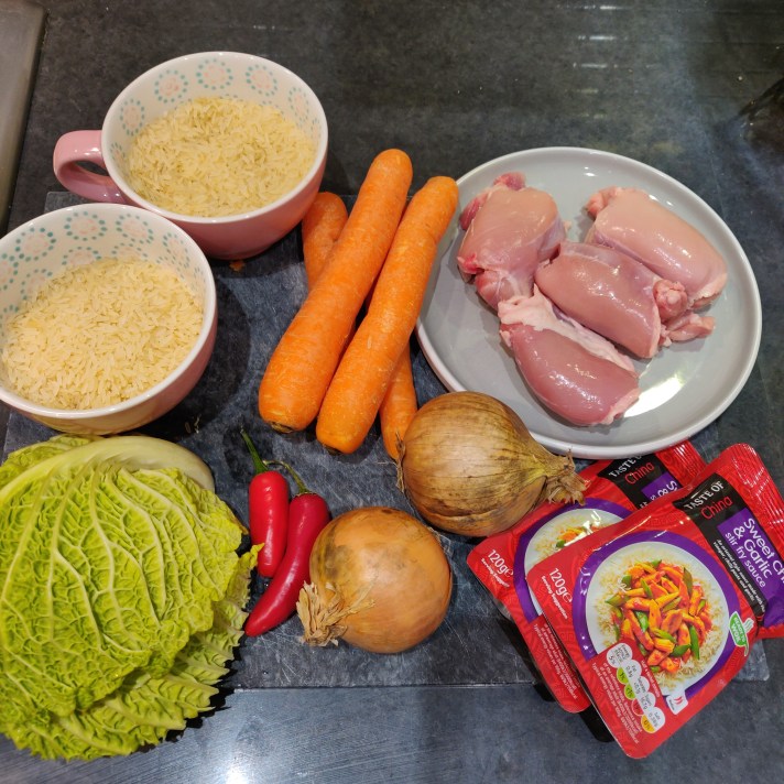 - 550g Chicken thighs (the other half of the pack used for the stir fry)