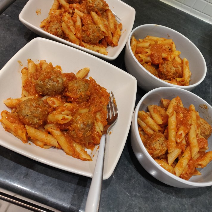 - Cook your pasta according to the packet instructions. Once ready, drain and add to the meatballs and sauce. Stir gentle and leave to stand off the heat for two minutes then serve.