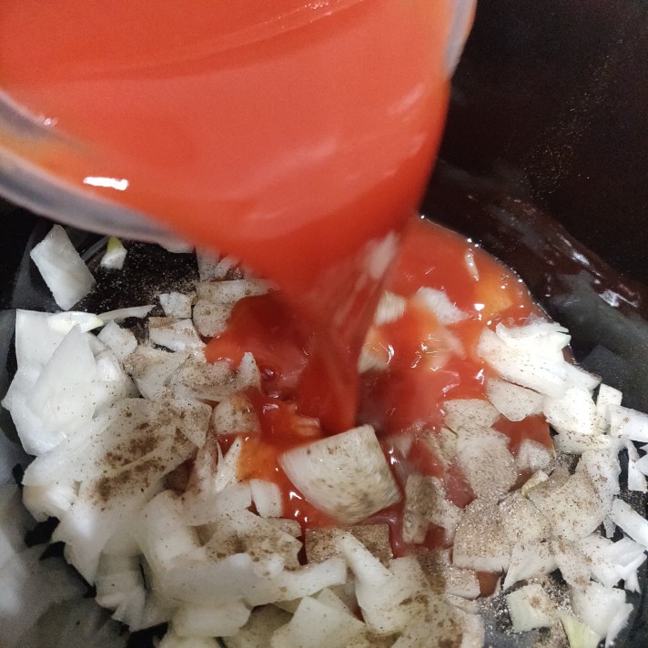 - Juice from the one tin of chopped tomatoes (leftover from the sausage casserole)