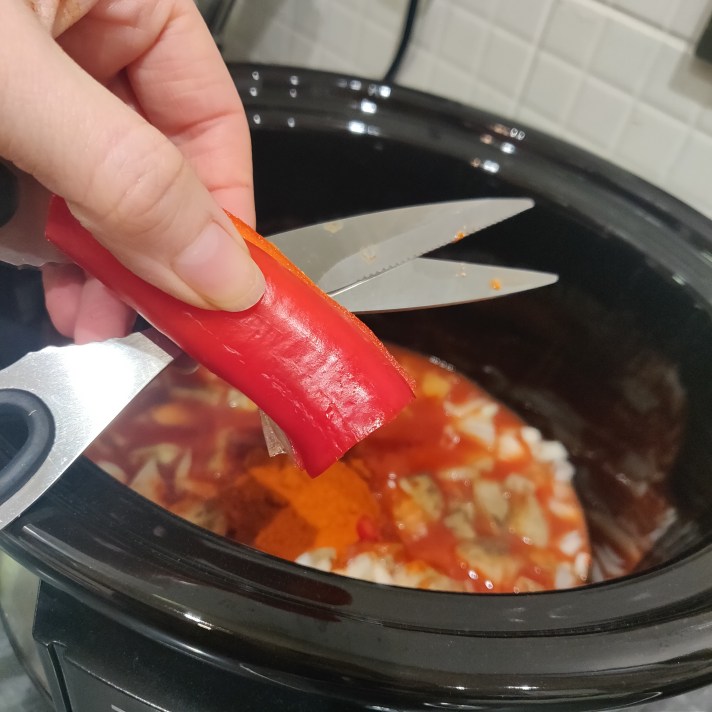 - Sprinkle over the paprika and diced chillies. Stir to combine.
