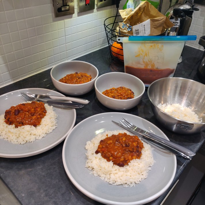I’ve tried to create a mix of meals that all use similar bases because unlike the subscription boxes that can send out one stock cube or a small pack of meat, I have had to buy full packs of ingredients. I have tried to pick meals that to show the variety of different styles of food you can make despite using lots of the same basics. Each meal had its own unique flavour so variety with bog standard cupboard staples is absolutely possible and I hope that’s what this meal plan demonstrates.
