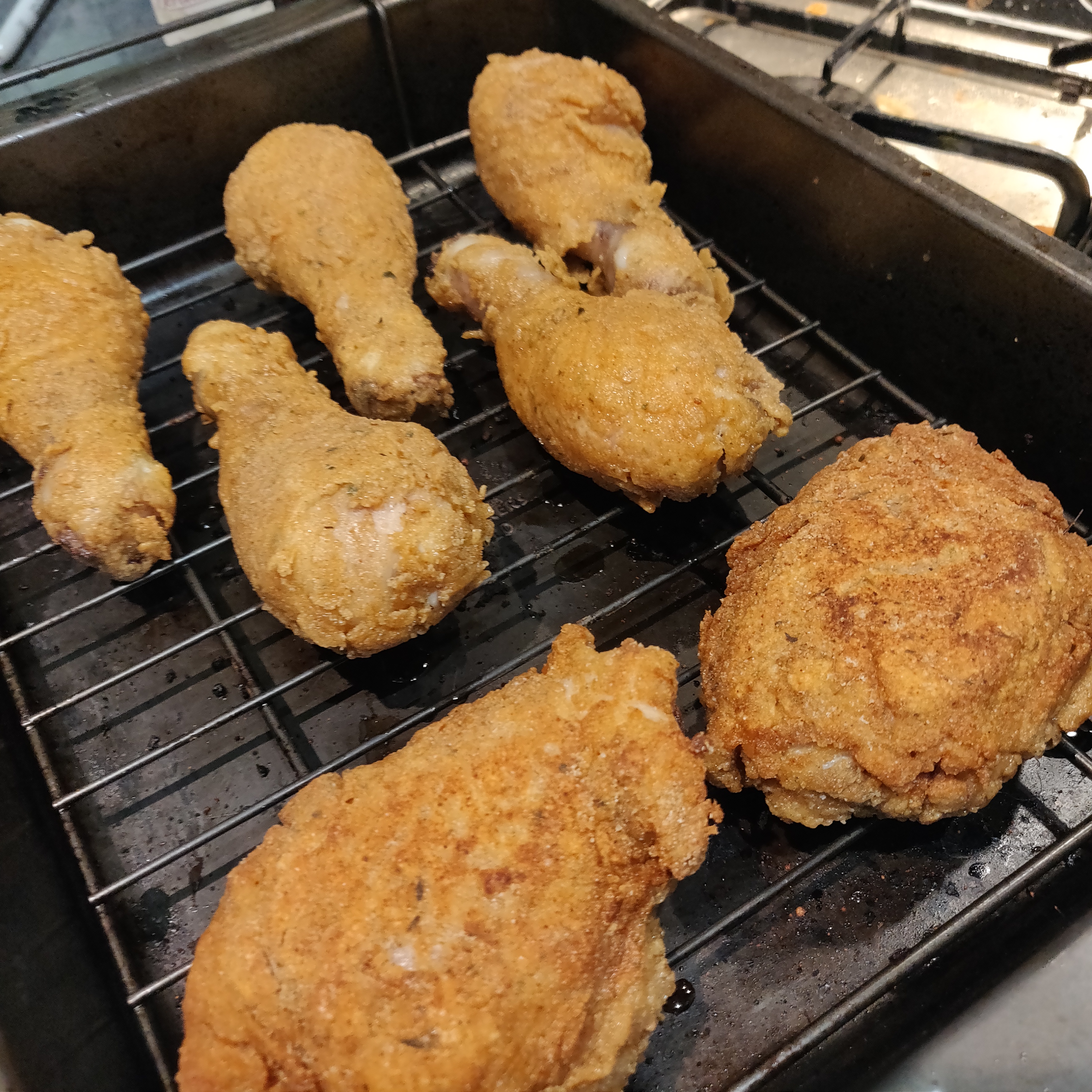 As a bit of a side note, when it came to the herbs and spices, I just used what I had. Every recipe I read had different mixes from things like cayenne pepper, celery salt, garlic powder, onion powder, ground cinnamon and so on. I think mine needed a bit of ground cumin and maybe a bit of chilli powder. Having said that, the coating I made was still mega tasty and crisp.